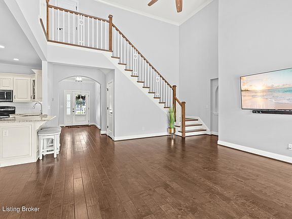 Every window is adorned with custom fit plantation blinds, and all three bedrooms feature ceiling fans. Hardwood floors throughout first floor and carpet on second level. As you enter, you'll feel right at home. The foyer hosts a convenient home office and a powder room. Nearby, a mudroom with built-in storage leads to the 1st floor laundry room.