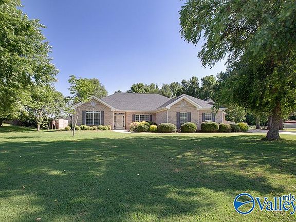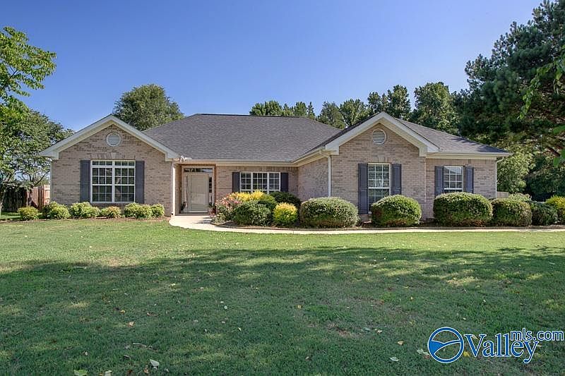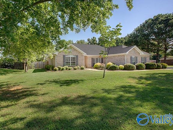 Welcome home to this stunning brick ranch-style haven! This open floor plan boasts hard wood floors throughout and has freshly painted interiors, making it move-in ready. The owner's suite features elegant tray ceilings and an ensuite glamour bath with a Whirlpool tub and separate shower. Enjoy the freedom of no HOA and the convenience of a 1,067 sqft detached garage/workshop with a half bath. The property also includes a spacious 569 sqft back patio, a pole barn, and an additional outdoor covered storage facility. A new privacy fence with a double gate adds to the charm and security. Plenty of space to add a pool, garden, and Chicken Coops. Mins to Redstone & Huntsville.