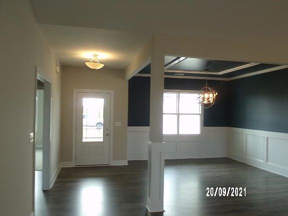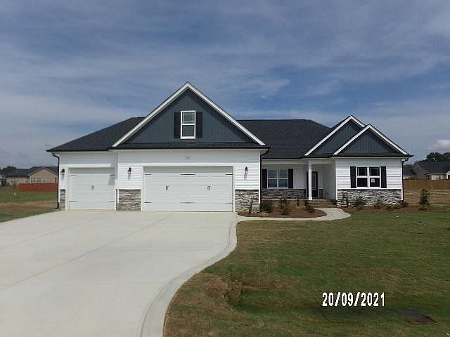 New home with 3 car garage. All bedrooms have walk in closets. 3rd bath upstairs off bonus room. Nice foyer and a formal dining and breakfast area. Kitchen has island,granite tops,tile backsplash and SS appliances Open floor plan. Family room has fireplace with gas logs. Enjoy patio and covered porch Also has some walk in attic space. l