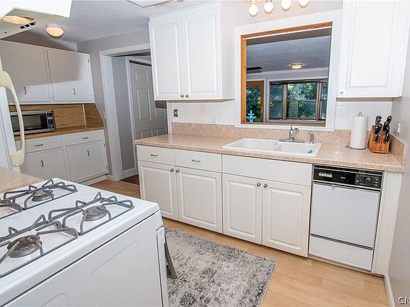 Fall in love with this charming Cape Cod conveniently located in the Village of North Syracuse! As you walk in you are greeted by a large living room gleaming with natural light. This updated kitchen has beautiful white no overlay cabinetry. Just behind the kitchen is the dining room feet away from a massive deck leading to the lovely private yard making this the IDEAL place for entertaining!! The first level also offers 2 ample sized bedrooms with the possibility of a third upstairs. Additional upgrades include new windows in 2015, hot water tank 2015, newer furnace and A/C. Make your appointment today before it's too late!