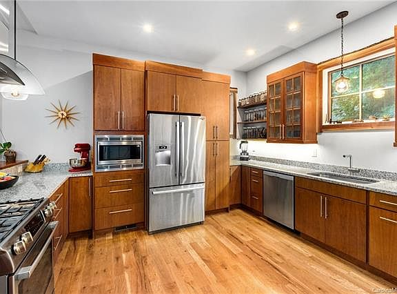 Stunning JADE Mountain Builders home in Historic Montford within walking distance of downtown Asheville. This unique light-filled 4BD 2.5 BA home sits on Hibriten Drive host to historic Montford homes as well as a large number of new green built homes from Asheville's top green builders including JADE Mountain and JAG Construction. High end features include locally harvested Walnut trim and bartop on main level, locally harvested Poplar trim on upper/lower levels, white oak, tile and stained concrete floors, on-demand hot water, and low maintenance landscape. The open floor plan includes lots of windows and a true chef's kitchen with Bosch appliances and cherry cabinets. Owners added 4th bedroom and incredible outdoor deck with fenced yard. Two basement bedrooms with full bath have private entry for great short term rental potential with homestay approval. Enjoy city living and all Asheville has to offer with this amazing modern mountain home!
