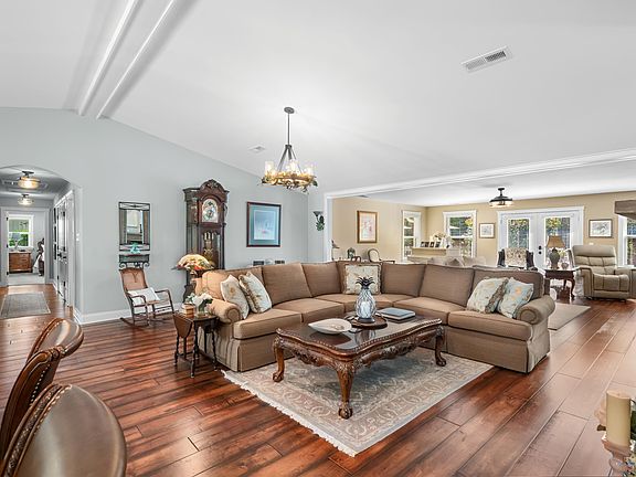 This beautifully renovated home in Briarcliffe Acres offers single-level living on a spacious 1.33-acre lot. The open floor plan includes 3 bedrooms, 2 1/2 bathrooms, and elegant hardwood floors throughout much of the home. The gourmet kitchen features a butler's pantry and wonderful cabinets. The kitchen flows seamlessly into the living areas, ideal for modern living. The open living areas of this home create a seamless flow between key spaces that include the kitchen, dining room, living room, breakfast area, and family room. The primary bedroom features a lovely en suite bathroom with double sinks, tile shower and tub. This bedroom also has a separate sitting area currently being used as an office. Outdoor entertainment is a breeze with a pool, deck area and a welcoming front porch. The property includes both an attached 2-car garage and a detached 3-car garage equipped with a lift, perfect for vehicle enthusiasts. Additional storage is available with a spacious shed. As part of the Briarcliffe Acres community, you’ll enjoy private beach access. This home combines luxury, comfort, and convenience in a prime coastal location.