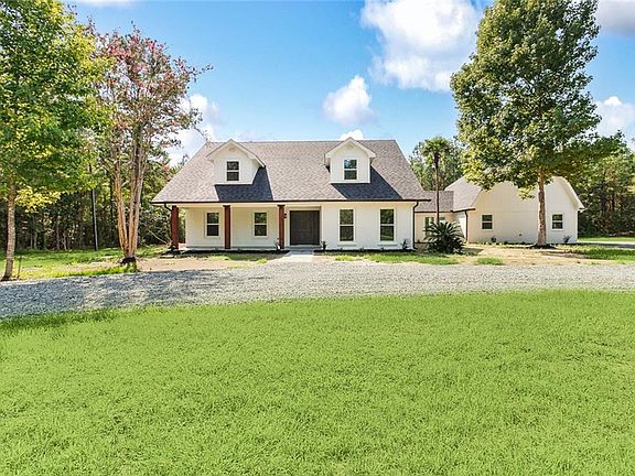 The LAND you want as well as the HOME you want. You have to see this ONE! A Beautiful Renovation on a secluded 9 acres in Bush! Come up the long driveway and witness the solid wood columns that makes this home sparkle. Through the front door is 4 beds/2.5 baths + Office + Bonus room, above the large 2 car garage, that includes a shiny epoxy floor for car lovers. Fantastic Open living room w/entertainers bar, fireplace and custom built in shelving. Separate formal dining room. Gorgeous kitchen includes granite countertops, island, bartop seating, marble backsplash, custom cabinets, pendant lighting, vent hood & walk in pantry. Oversized primary bedroom w/ensuite bath includes dual vanity sinks, modern finishes & custom fully enclosed walk in shower. Out the backdoor, is the covered epoxied patio, great for a crawfish boil. Many acres to explore! Special features include: NEW Roof, ACS, Gutters, Windows, LVP throughout, Paint, the list goes on! Flood Zone X!