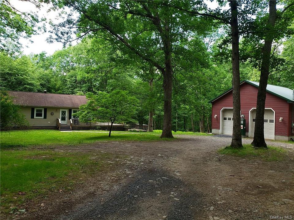 Private, private, private - with a fantastic two car garage, high ceilings and lift! This three bedroom, one full bath ranch is newly painted and waiting for new owners! There is a full, walkout basement. And a large party deck with views of only nature! Located in the mountains just off the Scenic By Way but close to the Delaware River. Enjoy rafting, kayaking, boating, fishing, etc. Also, close to Port Jervis, mass transit, shopping and dining. Call for your appointment today!