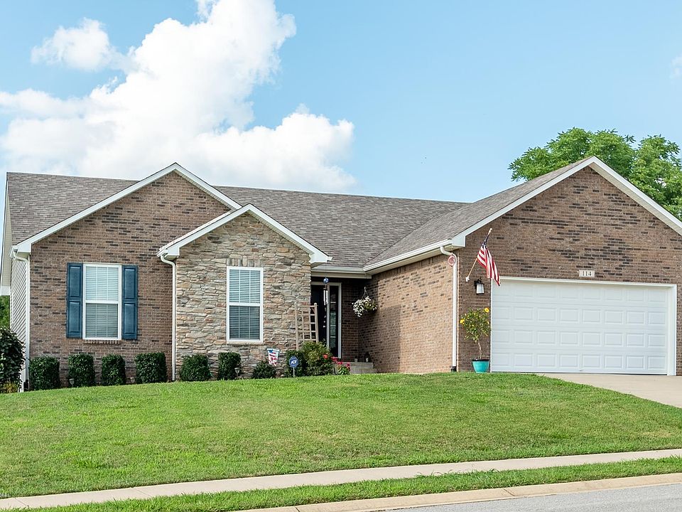 Beautiful 3 bedroom, 3 bath ranch home in the Nicholas Ridge neighborhood! This home is located within the Elizabethtown Independent School District and features an attached 2 car garage, fenced in back yard, and a partially finished walk-out basement. When you enter the home you will notice the vaulted ceiling in the living room which also has a fireplace and opens up to the dining area. The kitchen has room to create a breakfast nook, stainless steel appliances, and plenty of cabinet space. The master bedroom has a vaulted ceiling, walk-in closet, and an en suite master bath with a double vanity. The partially finished basement has a family room and full bath as well as unfinished space that can be used for storage or room to expand the living space. The basement walks out to a patio