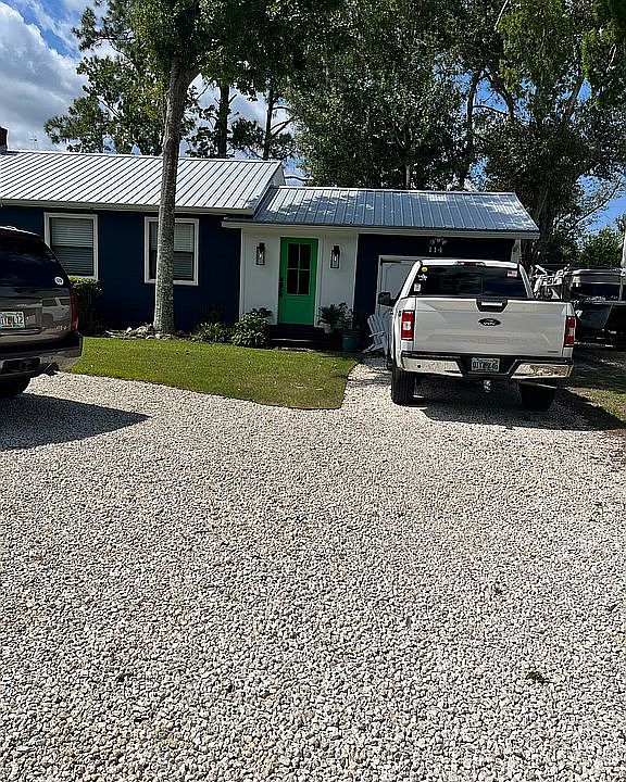 This adorable 3 bedroom, 2 bath Florida-cottage style home has been remodeled with new metal roof in 2021- outside gas water heater, out door shower, new large deck, new ac system new stainless kitchen appliances, new 20 x 12 storage bldg is heated and cooled and has power and water. Just 4 blocks from downtown shopping and restaurants. Located on Hunter Circle,has a number of beautifully renovated homes already in the neighborhood. Mature trees provide lots of shade. Large fenced backyard with a separate fenced area and workshop. Carraige style doors on garage open for storage of beach and yard tools. Enjoy the convenience of living in town but just 10 min from several beaches.