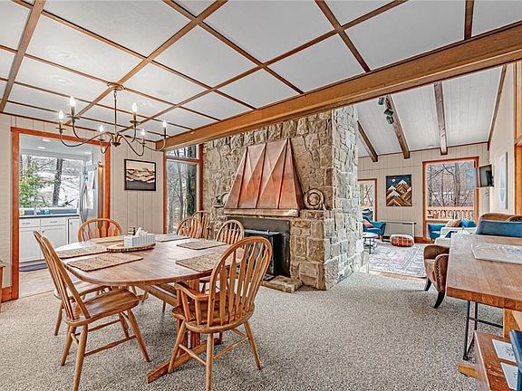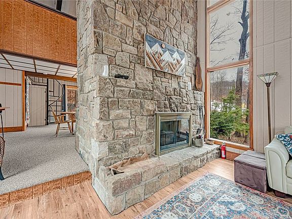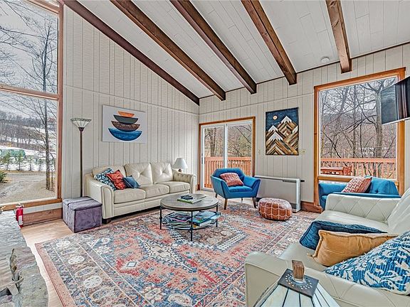 It's all about the LOCATION! Hidden Valley Ski House located just across the road from Imperial Ski Slope! Walk to the Slopes in this practically Ski In/Ski Out Chalet Style Mountains Getaway! Ideal investment property for a rental or your own mountain retreat. Furnished & Turnkey home has so much rustic charm with all the details. There are 4 bedrooms which includes the loft, plus a bonus room that can be a 5th bedroom area or another family room. Once you step inside, you will admire all the unique little details such as the double sided, stone, wood burning fireplace, high ceilings, spiral staircase, exposed beams and more. Enjoy cooking in the kitchen as you look out at the ski slopes or unwind on the spacious wrap around decking canopied under the trees, or walk to the lake just below, this setting has so much to offer year around. The garage is perfect for storage. Enjoy life at Hidden Valley and all it has to offer. This home is currently in rental, no showings until Feb 27th