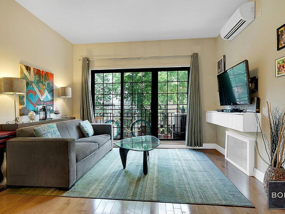 Introducing one of the newest boutique condominium building in the Williamsburg / Greenpoint Area. Located on a beautiful tree lined block, in the heart of TRUE Brooklyn, with cool nightlife and dining venues surrounding you.A separate entry foyer leads way to a large living room with access to a private balcony. The spacious open kitchen comes with a breakfast bar, granite counters, white lacquer cabinetry and stainless steel appliances. The bathroom consists of a double sink, soaking tub, and separate glass enclosed shower. With hard wood floors throughout and a bedroom fit for a king size bed and ample closet space are some of the benefits of this apartment. The unit comes with radiant heat instead of those loud PTAC or HVAC units and with zoned Fujitsu wall mounted AC units for each room.The furnished common roof deck with stunning city views is not to be missed and open to the whole building. With common storage area in the basement for bikes and extras. Just a half block to the Greenpoint Avenue G train station and East River ferry terminal allow for an easy commute to Midtown Manhattan. Enjoy the benefits of a 421A abatement until 2026. This is a must see in the ever changing and improving Greenpoint. Make an appointment today and see for yourself.bond1120886