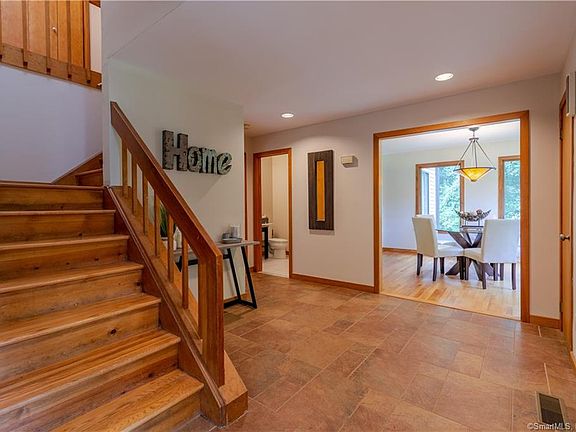 North Stamford Contemporary located on very quiet Private Cul-de-Sac with 1.4 Acres. Large open eat in Kitchen with Family Room with Fireplace. Dining Room & Living Room with fireplace. Master Bedroom With Loft space, plenty of closet space plus Cedar closet. 3 additional bedrooms. Finished basement with full bathroom & walk out, would make a great Au-pair or In Law suite. Recently painted exterior & interior.