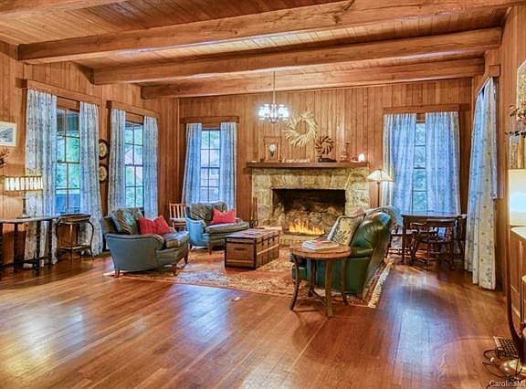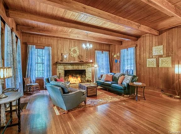 Loaded with historical charm, this 1928 "Summer Home" was crafted from chestnut trees harvested from the Hickory Nut Gorge before the river was dammed to create Lake Lure, and milled on-site! Many original features include light fixtures, custom-milled windows and doors, wood floors/walls/ceilings and claw-foot tubs. Updates and repairs have been made staying true original design. Built for family summer gatherings, there are four bedrooms, plus "built-in" beds in the upper hallway. Modern conveniences include updated kitchen appliances, a 2-yr old HVAC, a mini-split system to supplement upstairs heating/cooling, a new front porch and landscaping. A new metal roof was installed July 2019. Also on the property is a "matching" 1-room cabin that can be restored for additional guest space (sold as-is). If old homes are your style, this is the one! Winter views of Lake Lure and mountains, sunsets, walking distance to Lake Lure public beach and the Lake Lure Inn. Great vacation rental!