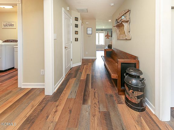 Contemporary Ranch Home in Moyock, NC with a 3-bay garage is the one you have been looking for! Nestled on almost an acre lot with no HOA and no flood insurance required.Walk up to this home and the covered front porch greets you. Enter into the foyer and you will love the floor plan. The great room is the focal point of the house, featuring a split floor plan with the guest bedroom and bathroom on one side of the home. The spacious primary bedroom features a luxurious en-suite including a jacuzzi tub, separate shower, and water closet. Gorgeous floors have been recently installed throughout the home.The modern kitchen boasts white appliances and cabinets, along with both an eat-in area and a separate dining area. This home is filled with natural light from its many windows. The spacious FROG (Finished Room Over Garage) is considered 4th bedroom. Can be used as a flex room. French doors lead out to the enclosed back porch, overlooking the spacious yard. This home is minutes from the border for easy access to Hampton Roads, about 55 minutes to the OBX, and 30 minutes to Elizabeth City. Come enjoy what NC has to offer. Call to see, showings start Friday, July 5th!