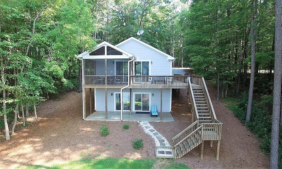 Lovely site-built and well-maintained waterfront home. Beautiful wide cove views and easy access to the main lake. This lot offers a nice private setting, not secluded & not in a subdivision which makes it the perfect lake escape. The main level has open kitchen, dining & living room with 2 sets of sliders to the lakeside deck and screened porch. Main level also offers 3 Bedrooms and 2 Bathrooms. Finished lower level with family room, kitchenette, 2 undesignated rooms, bathroom. Lower level has direct access to lakeside patio. Outbuilding and gravel driveway. Lot very gently slopes to waterfront where you'll find the boathouse with jet ski lift. Fire pit area for an added entertainment factor under the fall night sky. Very nice lake setting for either full-time or part-time lake living. A property that merits a visit to appreciate!