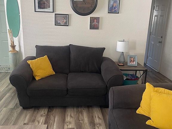 Adorable, well-maintained home featuring 3 bedrooms, 2 baths, open kitchen with dining area, and large patio with privacy fenced back yard! Two storage buildings to stay, as well as a fire pit to circle around on those cold evenings! Updated bathroom vanities and light fixtures in the kitchen and garage. New LVP throughout. New water heater in 2022.