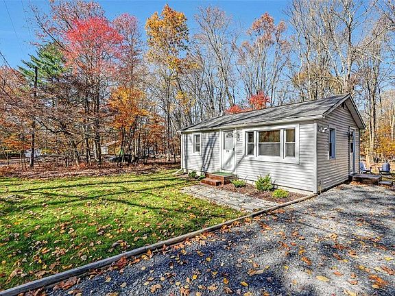 A PERFECT POCONO CABIN IN THE WOODS! This 2BD/1BTH Ranch home has been remodeled and shows like a little jewel that sits on 0.32 flat tree-lined acres DIRECTLY ACROSS FROM TEGO LAKE in East Stroudsburg! Low maintenance inside and out with everything on one level for easy living. The home is, light, bright & boasts laminate floors & recessed lighting throughout. The Kitchen is modern with stainless appliances & has a butcherblock countertop with large farm sink and laundry area. The Bathroom has been completely redesigned and boasts a custom tiled corner shower with herringbone design. The flat front & back yards are ideal for relaxing, gardening, entertaining or walk across the street and enjoy the lake views! A great starter home or a manageable vacation retreat! CENTRAL AIR, super low taxes and dues! Minutes to major roads, local amenities and attractions! CHECK OUT OUR VIRTUAL TOUR!