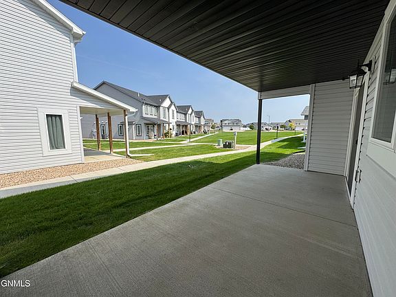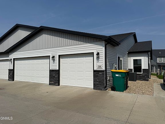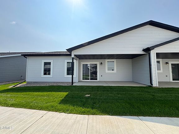 This ONE LEVEL townhome in South Bismarck boasts 1,394 sq ft, 3 Bedrooms, 2 Bathrooms, and a 3 Stall Garage!! As you enter the home you have Bedroom 2, Bedroom 3 and an ample closet space. Down the hall you have a Full Bathroom and the Laundry Room which leads you to the Garage. As you enter the Living Room you are greeted by an open-concept layout, with a 10' Ceiling that seamlessly blends the kitchen, dining and living room. The kitchen features Quartz Countertops, GE Slate Appliances, Corner Pantry and a Large Island. Vinyl Plank flooring is throughout the home with Carpet in the bedrooms and closets. The patio door in the dining room brings in an abundance of natural light and takes you to the covered patio. Off the dining room is the Primary Bedroom. The ensuite has a large Walk-In Closet and a 5' Walk-in Shower. The 3 Stall Garage is Heated, with Hot/Cold Water and a Floor Drain. Call your Favorite Realtor today to ''Address Your Future''!