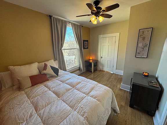 If you're wanting to live in a cozy, spotless apartment in the heart of Manitou Springs, within 2-minutes walking distance from all of the shops and restaurants downtown, then come take a look at this property. Sit on the front deck and soak in the beautiful mountain views of Pikes Peak. This is the upper unit of a duplex and has been completely remodeled, offering 750 sq. ft. of modern living. Key Features: - Spectacular Views: Enjoy breathtaking vistas of Pikes Peak and the surrounding mountains from your private front deck. - Bright and Inviting: Brand-new windows fill the space with natural light. - 1-bedroom with a cozy and peaceful vibe. - A sunroom perfect for your home office. - An additional room to use as a living area. Modern Upgrades: - Hickory Floors: beautiful wood flooring in the bedroom, living room and sunroom - Kitchen: Newly remodeled with granite countertops, new tile and heated floors. - Bathroom: Brand-new with stylish fixtures and heated flooring for year-round comfort. Also included is a Washer & Dryer. Convenient laundry access right in your home. Prime Location: A quiet street just a short walk to historic downtown Manitou Springs, with its unique shops, restaurants, and outdoor adventures. This spotless, trouble-free home is perfect for someone looking for a modern, move-in-ready mountain retreat. There's one parking space allocated on the street for this unit. Parking isn't an issue. I have lived here for the last 5-years and it has been paradise. This will become available 4/1. No smoking of any kind on the premise. Pets are allowed with a $250 security deposit and extra $35/mo. Tenant pays utilities & trash.