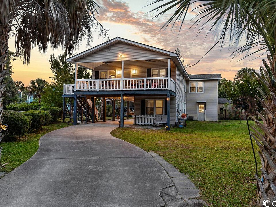 When you walk out of this driveway, you can see straight to the beach access 1.5 blocks away. This raised beach home also sits on Floral Lake; a small neighborhood lake in the heart of Surfside Beach. New roof installed in 2023. Walk right into a summer full of rental income with this beautiful 4 Bedroom 3 Full bath property in a prime location right by the ocean. Enjoy your morning coffee with a lake view located right in your backyard or a sunrise within a five-minute walk. Upon walking in you will be greeted by a graciously sized kitchen and living area. Updated flooring flows through the main level. two bedrooms upstairs and two downstairs with potential for a fifth bedroom currently utilized as storage. Nestled in a coveted no HOA community, this home offers you the freedom to make it your own without any pesky additional fees or restrictions. And with an array of shopping and entertainment options close by, you'll always be just a hop, skip and a jump away from all the action. This unit is fully furnished and turnkey to start your new life at the beach or start making rental income immediately.