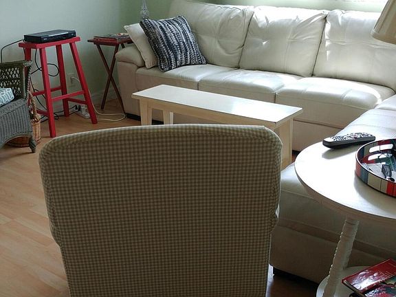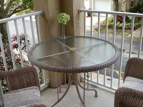 Bright and beautifully maintained furnished 2 bedroom, 2 bathroom, 1 car garage condo on the second floor. Hardwood floors throughout the living areas. Carpeted Bedrooms. Full size washer and dryer. Stainless appliances in the kitchen which will soon have quartz counters and white subway tile backsplash. Charming patio with outdoor table and 2 chairs. All utilities included. Community pool and play area.