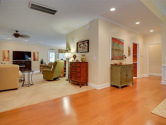 Many upgrades - gourmet kitchen - gorgeous cabinets, gas cooktop, stainless wall oven and microwave, walk-in pantry, corian and quartz countertops, ceramic floor and backsplash. Split Bedroom plan. Each bedroom has walk-in closets. Jack and Jill baths on one side. Awesome 28 x 18 screened porch. 2 12 x 14 patios. Overlooks a beautifully fully landscaped yard - each flowerbed surrounded by brick pavers. Outbuilding remains. Home backs up to wooded area.