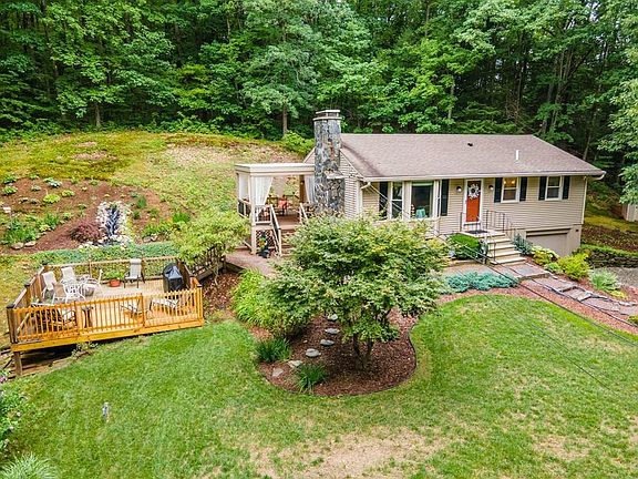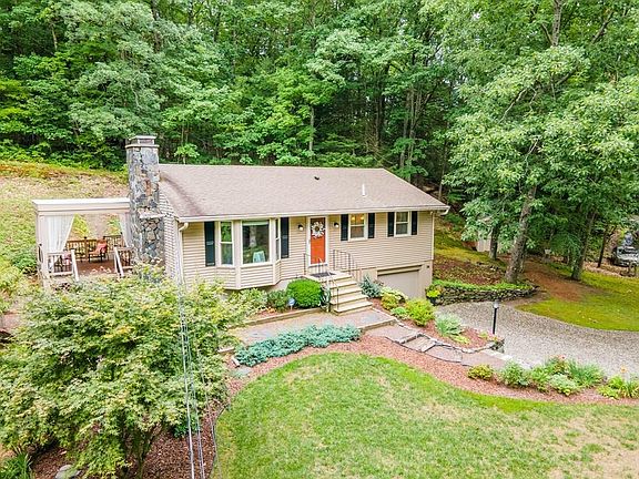 In a lovely country setting with a private, beautifully landscaped yard, this home has been renovated throughout with Kraftmaid, maple kitchen cabinets and quartz counter tops, remodeled bathroom, wood, tile and carpeted floors. Living room has a fireplace with propane gas logs. The lower level is finished with a family room, office, laundry, bath and a walk out into the garage. The two tiered deck offers lots of space to relax and is great for summer entertaining. Easy maintenance, stud nailed, vinyl siding, Gutter Maxx clog free gutters and air sealed insulation has been added. There is a new, energy efficient heating system and a new leach field has been recently installed. Impeccably maintained, in move-in condition and convenient to Rt.2 and I91.