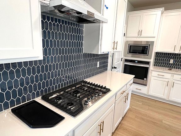 This spacious four bedroom home comes with spectacular designer finishes! The owner 's suite is located on the main level, an open concept living area with gas fireplace, and a gourmet style chef's kitchen. Upstairs holds a large loft, enormous storage closets, and three additional bedrooms. The home is designed with our Luxe Signature collection- white shaker cabinets, quartz countertops in the kitchen and bathrooms, gold fixtures, navy blue backsplash, and black tile bathroom flooring. The kitchen features stainless appliances, 30'' vent hood and wall oven, pendent lighting, soft close drawers, and a trash pullout. Designer flooring, lighting, and other upgrades throughout!