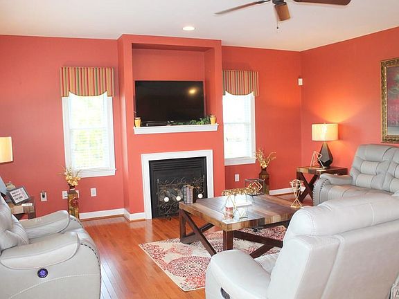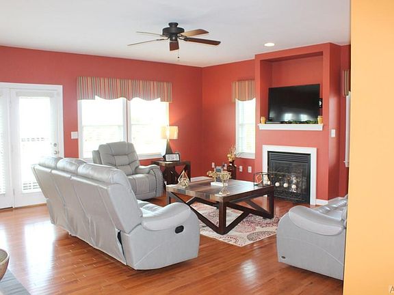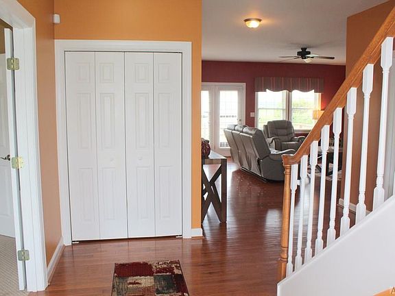 Custom designed home built for entertaining, large spacious rooms, custom made window treatments convey, great room with gas logs fireplace on first floor, beautiful wood flooring, deck off great room with farmland views, huge living space on second floor. First floor has a guest bedroom and separate dining room (with a closet). Master Suite on second floor with gas logs fireplace, bathroom with soaking tub and separate shower, dual sink vanity, large den on second floor, two bedrooms.