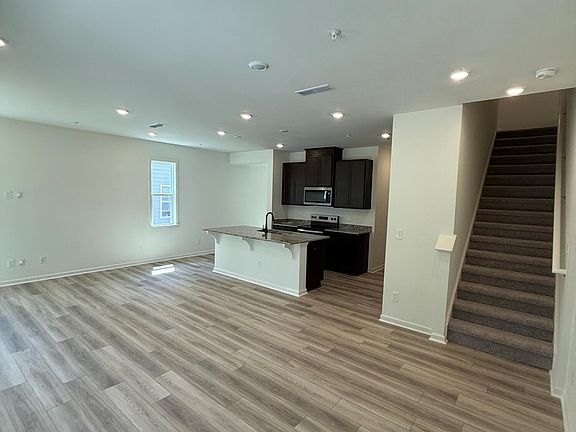 This spacious and light-filled 4 Bedroom, 2.5 bath with two car garage two-story town-home boasts an open floor plan and a stunning kitchen with 9-foot ceilings. It features a large island with granite counter tops, luxury vinyl plank flooring, modern Whirlpool® stainless steel appliances, Aristokraft cabinets, and Moen faucets. The generous owner's suite includes a dual sink vanity, a walk-in shower, an elongated toilet, and Moen faucets. Designed for energy efficiency, this ENERGY STAR home is equipped with Ecobee smart thermostats for optimal comfort. Enjoy the privacy of this beautiful woodview homesite. Walk right to Homestead Park featuring 2 Indoor Pools, 2 Baseball fields with Batting cages, Walking Trails, Basketball courts and Large Dog Park area. Stanat Place will border Homestead Park which is Chapel Hill's best family park area!