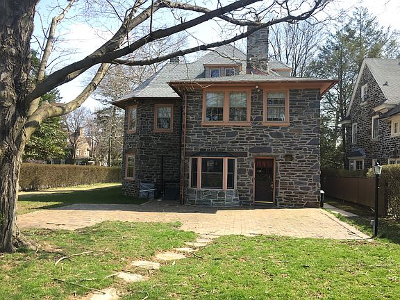 A gracious wrap around porch welcomes you to this grand stone colonial, situated on a beautiful corner lot in a coveted neighborhood. Lovingly maintained for 52 years by the same family, this home boasts a new roof (2017) with soldered copper gutters on both the home and over-sized, detached garage plus a new (2017) heater and water heater. As you step into the entry hall, you will immediately notice how large and accommodating the living spaces are proportioned. The living room, with its many windows and wood burning fireplace, provides ample space for gathering and family life. A generously sized formal dining room, with bay windows is perfect for everyday meals and entertaining, alike. The eat in kitchen offers an enormous footprint and possibilities. The 2nd level is home to a large master suite with dressing room and full bath. Two additional bedrooms are on this level as well as a large hall bath and huge laundry room. Walk up to the 3rd level to find two additional bedrooms separated by a wide landing and hall bath. Beautiful hardwood floors through out this solidly built home. The full, unfinished basement is clean and bright, perfect for storage or a workshop. Yard is fully fenced and private feeling. Walk to shops, restaurants, places of worship, the commuter train and playground. 2019-01-31