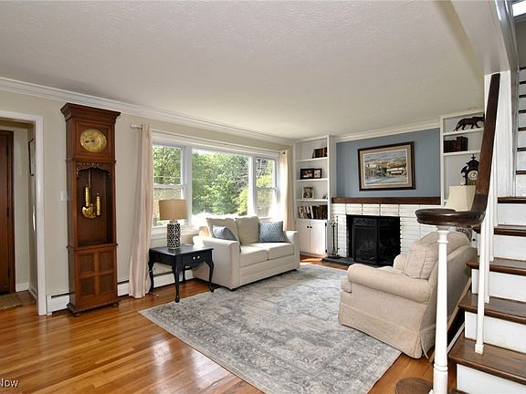 Precious memories begin here in this charming 4 bedroom, 2 bath home nestled among the trees in South Russell. Inviting living room with brick fireplace flanked by built in bookcases. Formal dining room has hardwood floors and sliding glass doors to deck. Cozy den, perfect for the computer and quiet times. Warm and welcoming kitchen with breakfast room. Centrally located family room has a wall of glass windows plus the warmth of a wood burning pot belly stove. Upstairs, four bedrooms, hardwood floors, bath and linen closet. Full basement ready to be finished recreation room/ hobby or playroom. Laundry and plenty of room for storage. Two car garage. Large wrap around deck overlooks picture-book backyard with pond. Minutes from Chagrin Falls Village.