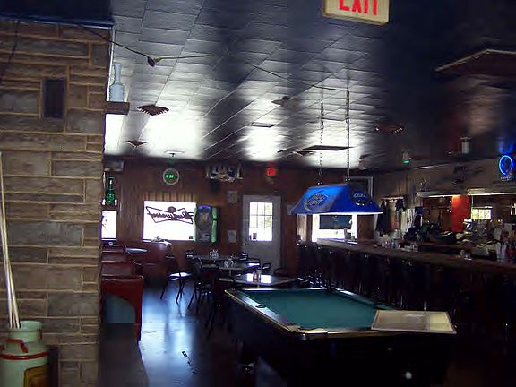 Nice brick building currently operating as a bar. Includes, restaurant equipment*. Plenty of seating inside, with fireplace, fenced in beer garden, kitchen, office & walk in cooler and freezer. All measurements are approximate. No guarrantee on any equipment.