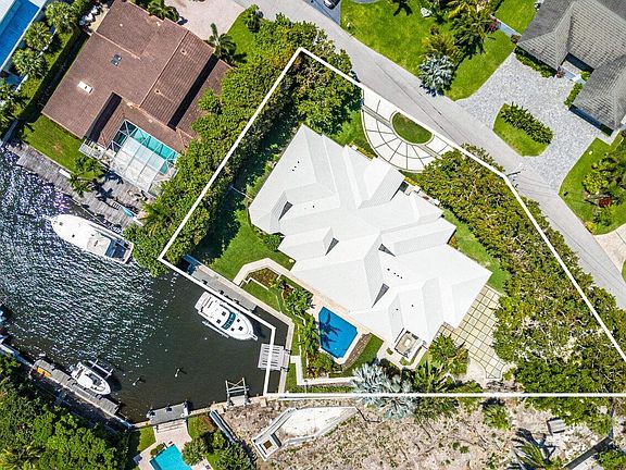 The primary bedroom offers serene water views, tray ceilings, his-and-her bathrooms, and two large walk-in closets. Three additional guest suites complete the home, one of which is oversized with water views leading out to the pool. Seamlessly blending indoor and outdoor living, the loggia and resort-style pool are surrounded by lush landscaping for maximum privacy. The dock includes a boat lift and a jet ski lift. This estate is perfect for those seeking resort-style living close to shops, restaurants, airports, and all the amenities South Florida has to offer.