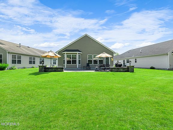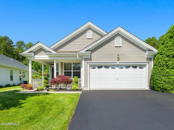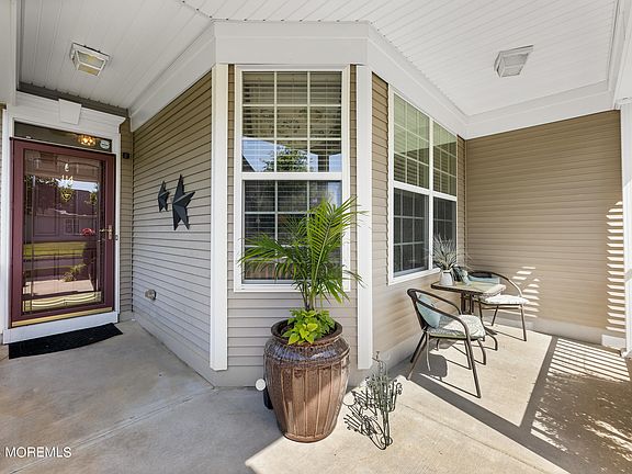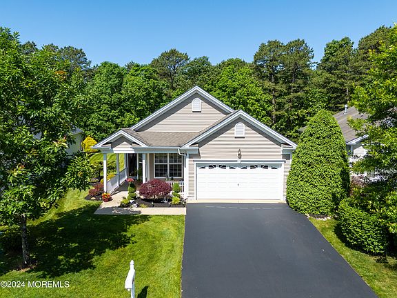 Welcome to 114 MARLOW DRIVE, an impeccable home sitting on a wooded .28 acre lot and featuring an enormous paver patio at back and lovely porch in front. This sought after INVERNESS model (2 bedrooms plus spacious DEN) has been beautifully upgraded with a fantastic new kitchen with unique custom cabinetry, white quartz countertops, newer stainless steel appliances, and pendant lighting opening to an inviting family room with newly remodeled stone fireplace, with additional cabinetry and wine fridge below. Eat-in kitchen area can accommodate large family gatherings! Master bedroom has bumped out bay window, vaulted ceilings, and two walk-in closets. Master bath features jetted tub, dual sinks, and upgraded tile and vanity. There is wood flooring throughout, except in bedrooms and den PLEASE NOTE: Formal LR/DR is being used as bar/TV room. This model is perfect for guests, as secondary bedroom has it's own upgraded full bathroom. Four Seasons @South Knolls is a Premiere Active Adult community with a manned gatehouse, epic clubhouse, gorgeous resort-style pools, and activities to keep you as busy as you'd like to be. With low HOA fees and taxes, what are you waiting for? Come and enjoy the lifestyle you deserve!