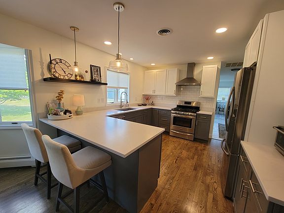 This sprawling ranch home offers an open concept with a large Livingroom, working fireplace, new kitchen with soft close cabinetry, quartz countertops, top of the line appliances and adjoining dining room. Warm toned hardwood floors boast 80% of the main floor including the owners on-suite; two additional large bedrooms, full bath, laundry room, half bath and office area with separate entrance. The basement offers ample space for additional living space along with a large rec room. Back yard is large enough for entertaining and gardening. Located just minutes to the hospital and interstate; call today this ranch wont last long!