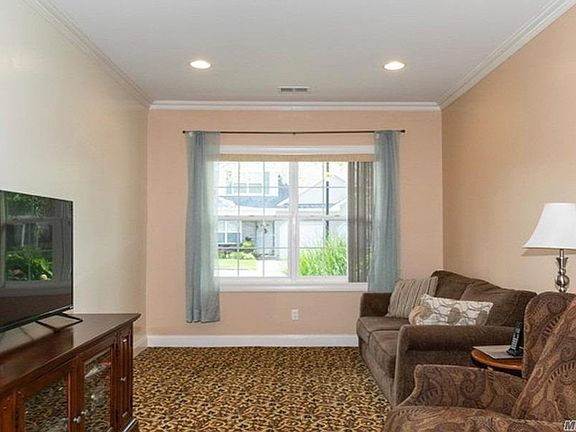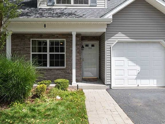 This mint, move in ready Sierra Townhome has two MSTR BDR's, one up and one down, 2.5 baths, LR/DR/KIT Combo, open floor plan with skylights, cathedral ceiling and garage. Built in 2008, it has all builder upgrades including cherry kitchen cabinets, stainless appliances, granite countertops, wood floors, crown moldings, high hats and more. Two zoned gas heat and CAC. Amenities include inground heated pool, clubhouse gym, and onsite security. Convenient to LIRR and Southern State Parkway.