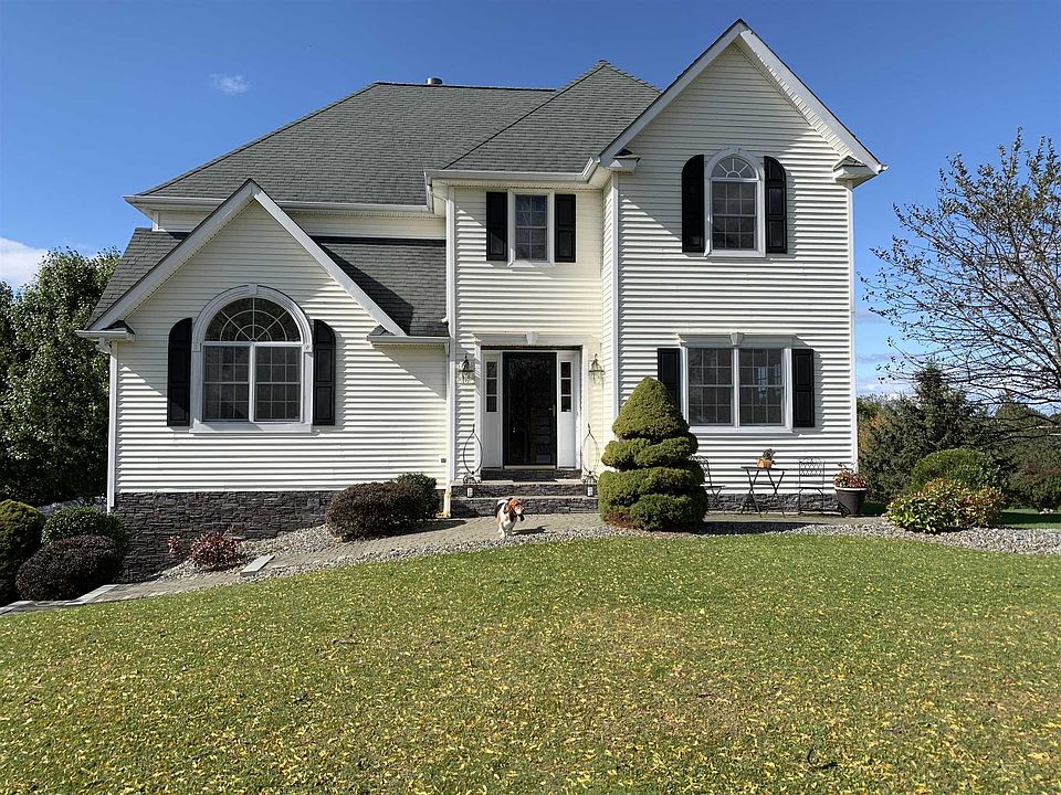 Welcome to Grandview Estates with year round mountain views! Spotless residence with lovely floor plan and perfectly decorated to match! Large formal dining room w/hw floors, millwork & crown molding. Hardwood flooring in beautiful eat in kitchen with recessed lighting, island & SGD to deck with seasonal mountain views. Half bath with pedestal sink off kitchen . Library with partial cathedral ceiling & palladian window. Bright sunken family room with corner fireplace. Wrought iron & wood bannisters lead to second level hall balcony overlooking a stunning 2 Story Entry. Laundry closet conveniently on second level. Large Master Bedroom with seasonal mountain views, crown molding & Casablanca fan. Master Bath w/garden tub, double pedestal sinks, shower and walk in closet. 2nd bedroom with cathedral ceiling & palladian window. 3rd & 4th bedrooms - wall to wall carpeting. Guest bath with crown molding. Bessler stairs to attic. Hardwood hallway. Unfinished basement w/2 car garage access.Vinyl siding & stunning slate stonework surround front of house and 2 car garage doors. A beautiful inground pool with white picket fence round out the attractiveness of this lovingly kept family home. Unilock walkway, with slate & unilock front steps. Furnace 10 yrs old; Reverse Osmosis System. Roof is original. Beautiful sunsets & a Winter Wonderland in season. Your buyers will love this very special family residence on 1.79 acres!