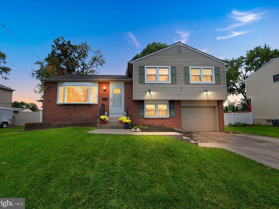 Offers due 5:30 10-9-24. No showings after 3pm 10-9-24. You're going to love this 3 bedroom, 2 bath, split level home in Downs Farm. The curb appeal is undeniable. You can pull in to the 4 car driveway or park on the wide street. Enter the home to see the hardwood floors that flow from the living space through the dining room with a view of the spacious backyard. The kitchen is nicely appointed with laminate flooring and tile backsplash. Upstairs you will find 3 well sized bedrooms and an updated bath. The main bedroom boasts 2 closets for your wardrobe. You also have hall access to a pull down attic. On the lower level, there is a 2nd living space, the 2nd full bath, access to the 1/2 garage for storage, the laundry room and a HUGE basement for MORE storage. Head out back, from the lower level, and take a look at your new yard, complete with patio for entertaining or relaxation. The yard is fenced for privacy. Horace Mann Elementary is a block away. A playground is just up the street. Half mile to Downs Farm Swim Club. 10 minutes to the nearest mall. 5 minutes to 295. 20 Minutes to Philly. SO convenient. Don't miss your chance.