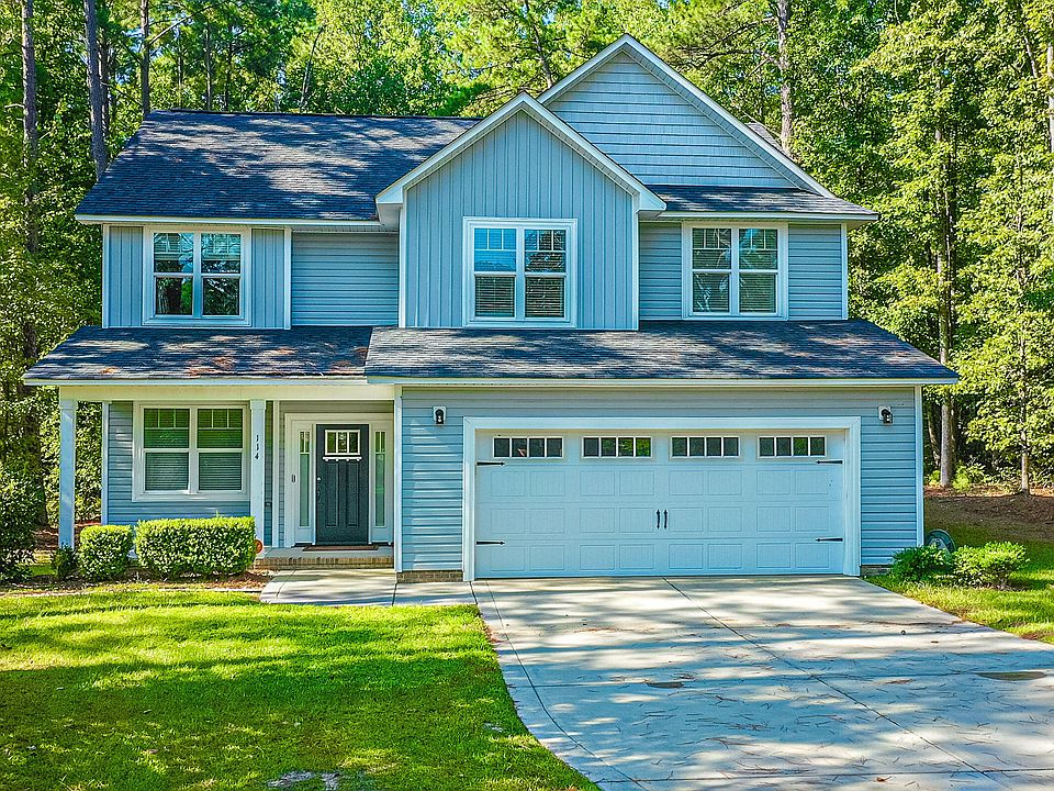 Beautifully maintained 4 bedroom 2.5 bathroom home located in Carolina Lakes. Exterior offers spacious grounds, well manicured landscaping and back patio with partial water views of Silver Lake. As you enter, you are greeted with an open floor plan from Dining room, Living room, Kitchen and Breakfast nook. LVP flooring situated throughout the main living space. Kitchen offers granite countertops, stainless steel appliances, and ample storage. Half bath located downstairs. 4 Bedrooms located on second floor. 3 spacious bedrooms with large closets share full bathroom. Oversized primary bedroom offers two walk in closets and well appointed primary bathroom. Primary bathroom includes dual vanity sinks, garden tub and walk in shower. Don't miss your opportunity to enjoy lake life and all that Carolina Lakes has to offer!