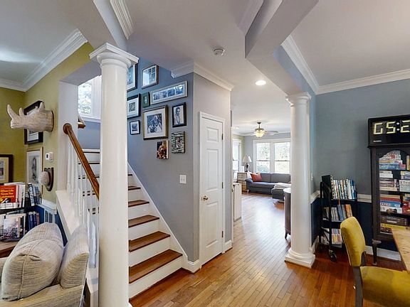 Perfectly situated Southern Village home with beautiful Landscaping and Stonework - Conveniently Close to Schools, Parks, and Market Street - 3-Bed 3.5-Bathroom Home with a 3rd Level bonus room and Full bath that could be used as 4th bedroom. You'll enjoy the Covered Porches on both the first and second floors, while the Screened Porch provides a serene view of the Stone Water Feature and Koi Pond. Additional Storage Space awaits on the third level and in the 2 car Garage with pull down floored attic.