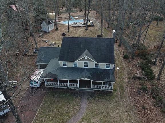 What a value for this 2.5 Story Colonial Home nestled on almost an acre of land with a beautiful wrap-around front porch. This home needs some updating and upgrades but has great bones and generous size rooms throughout. Long front foyer entry with a traditional 1st floor layout with the living room & dining room opening on each side. Through the back is a spacious eat-in kitchen with separate breakfast room. Kitchen equipped with a 2-Tier Island center, electric stove, wall oven and pantry. "Step down" family room with 1 or 2 brick fireplaces w/ wood hearth & custom cabinetry featured on each side. Open to expansive Sunroom with sliders to rear private deck. Set in the back is an inground pool and shed. The Laundry area is also located on the main level offering front loading Kenmore Elite set included in the sale. The basement has (2) large finished rooms ( 30x23 & 16 x 14) One is a pool room and the other has a large custom bar. Old carpeting was removed and ready for buyer's personal choice of rugs and d~cor. The 2nd floor features 4 spacious bedrooms with all of them having large to medium size walk-in closet options. Master suite has the 2nd Fireplace with brick surround and wood hearth with a tile base. Complete with a master suite with a double sink. This property is an Estate Sale and is being sold in "as-is" condition.
