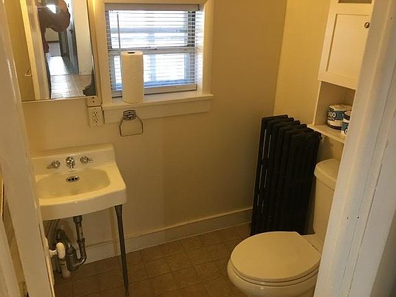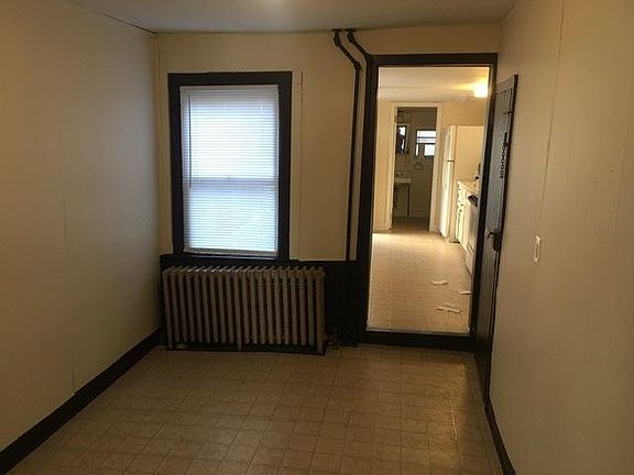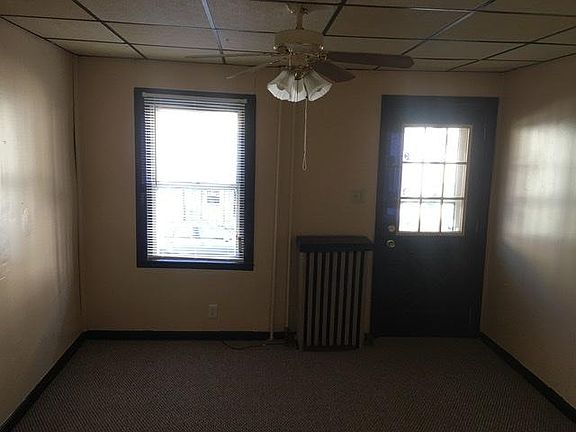 Small two bedroom row home with fenced in backyard and one off street parking space. One private and one walk through bedroom. Washer dryer hookup in basement. Just repainted with all new carpets. Super clean. Attic for storage. Tenant pays utilities gas water sewer electric. Trash included with rent.