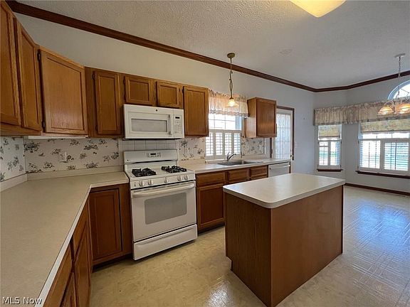 Spacious 3 Bedroom & 2.5 Bath Colonial in The Woods of Burlington. This home offers over 2100 sqft of living space, Dining Room & Living Room combination with gas fireplace. Eat-in Kitchen with center island, all appliances & breakfast area with access to deck. 1st Floor Master Bedroom & Master bath with soaking tub. 2 additional large bedrooms on second floor with full bath to share. 1st floor laundry room with storage cabinets & access to garage. Full unfinished basement. Nicely landscaped and manicured yard includes side deck with pergola & back patio. 2+car attached garage. Newer Roof and Central air installed approx 2 yrs ago. This home needs some updating and your TLC....ready for a new family to make improvements and decorate to make it their own, priced to sell AS-IS. Community offers walking trails, playground, pavilion and just minutes to schools, shopping, hospitals, golfing, biking trails, Geauga Parks & Historic Chardon Square!