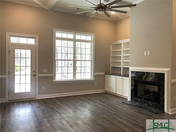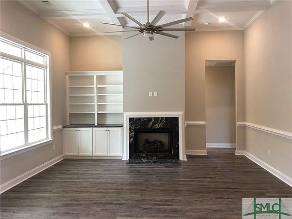 Gorgeous semi-custom all brick home with 4 bedrooms, 2 bathrooms, loaded with luxury features! Plank flooring throughout! Coffered ceilings in the living room w/built in bookshelves and fireplace! Open layout to the kitchen featuring an island, granite countertops, breakfast bar, breakfast room, Black Stainless Appliances including the Refrigerator, and Walk-in Pantry. The Master Suite features trey ceilings, a huge bathroom with separate shower & soaking tub, double vanities w/ additional powder counter, dbl walk in closet, and attached room (4th bedroom) that would be perfect for a home office, baby nursery, or hobby room! Other luxury features include a second bathroom w/double vanities & built in cabinets, laundry room w/cabinets & backdoor foyer w/ built in bench with bag hooks, covered patio, & more! Conveniently located near downtown Springfield, Rincon, and short drive to Pooler! Builder offers $5,000 towards closing with full price offer and a 2/10 home warranty!
