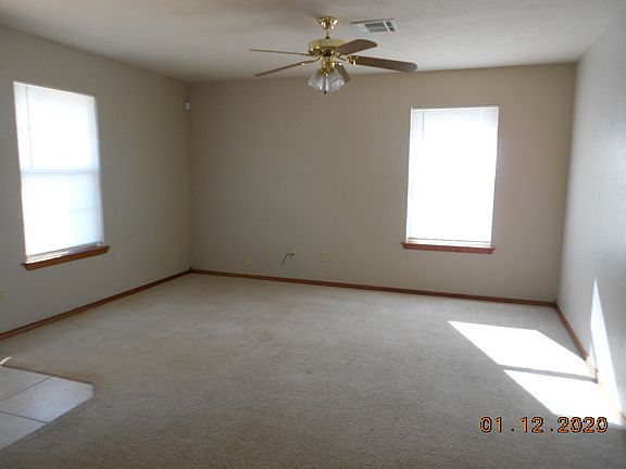 Spacious family home located in Geronimo, OK, just a 15 minute drive to Ft. Sill or Lawton. This brick home has 4 bedrooms, 2 full baths, 2 living areas, a 2 car garage w/remotes and is in a quiet neighborhood. Backyard is huge, has a large patio and a privacy fence. Master bedroom will accommodate large furniture. There is a closet safe room. Established landscaping all around as well. This home is perfect for a family that doesn't want to live near the hustle and bustle of Lawton but yet is only minutes away. This home was updated three years ago with new appliances, fresh paint, etc. No smokers. No app fee, no fees whatsoever. One year lease. Pets allowed with owner's approval. No smoking. Tenant responsible for yard maintenance.