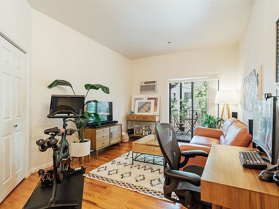 This is a spacious 1 bedroom with a nice size, open living/dining area. Large bedroom with ample space for queen size furniture. Hardwood floors throughout. Laundry in unit. And private balcony off living area, perfect for summer BBQ's! Large shared yard, and additional storage in basement. Great downtown location, short walk to Lightrail and Path stations. Pets ok! Available asap!