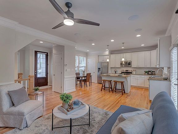 Quality construction in Huntley neighborhood with great access to UVA Grounds, Fry's Spring restaurants, the UVA hospital, & downtown. Special features include beautiful oak hardwood floors throughout, a tasteful kitchen with white cabinets and granite countertops, and a multi-room audio system.This 3 bed & 3 full bath home with TONS of natural light with tall ceilings and large windows. The quality of construction is evident from touring; energy upgrades include foam and loose fill insulation, Low E windows, tankless water heater, and radiant barrier roof sheathing. Enjoy views of the neighborhood trails from your back deck and walk to the community playground. Walk to local restaurants, Scott Stadium & UVA View the videos