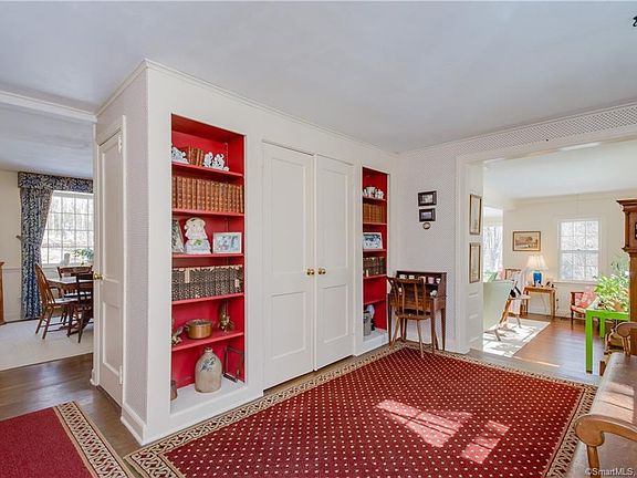 Charm Charm Charm in this 9 room gracious Gentlemens's Estate. Set high on desirable Morgan Road, 4.20 acres with Barn, Sap house and Pond. Extra large foyer with double closet, Living room has beautiful fireplace with cabinet surround, bar, window seat overlooking pond, generous molding, wide planked wood flooring and sliders to covered porch/patio. Formal Dining room with dining nook, china closet and views of woods. Spacious Eat-in Kitchen with beautiful backsplash of blue tile, vinyl tile flooring, breakfast bar open to Family room, large Fireplace surrounded with built-in cabinets, bookcases and a large Bay window with Southern exposure. Master suite with full bath, sitting room/office, Upstairs is complete with three additional bedrooms. Back hall boasts spacious mud room, 1/2 bath, laundry and closets. Hardwood floors throughout, thermal windows, 2 staircases, attic fan, 2 car attached garage. Newer roof, furnace and mechanicals. Truly a wonderful house to come home to