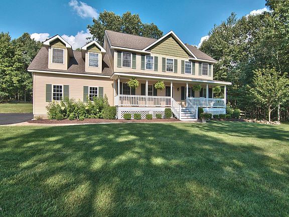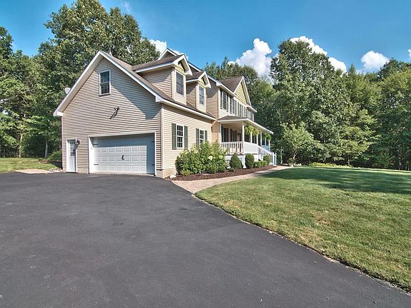 NON-HOA / NON-Community . Beautiful very well maintained colonial with nearly 4 acres of private / secluded land. Only 1 hour 45 mins to NYC. Only 2 hours to Philly. Only 10 mins to Dingmans Ferry Bridge to NJ for commuters. Only 20 mins to downtown Milford PA. Only 30 mins to Stroudsburg PA. Only 40 mins to Lake Wallenpaupack. Very close to State Parks and the Delaware River. Central AC, Open Floor Plan, Master Bedroom Suite with Whirlpool Tub, Beautiful Gourmet Kitchen with Granite Counters, Formal Dining Room, Wood Fireplace in the Living Room, all year round Sunroom that overlooks the green grass and wooded area of backyard. Great front porch, circular driveway, and a fenced section of the backyard for your pets / animals. Walking trails in wooded area for nature's serenity. MUST SEE