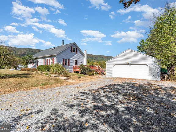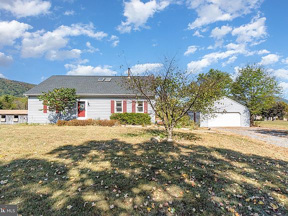 Perfect property for anyone looking for quiet country living with mountain views and space. This 4.75 acre farmette will appeal to hobby farmers, horse enthusiasts, homesteaders, families or retirees. Spacious 3 bedroom, 2 bath Cape Cod offers one-level living on the first floor with a primary master suite that has an attached office that was once a fourth bedroom and a convenient full bathroom. The country style kitchen flows into the living room which has a cozy woodstove that heats entire home. The central dining room opens up to back deck and offers scenic views of the North mountain. Upstairs you will find two large bedrooms on either end of the home with lots of attic space. A full bathroom, hall closets and a sitting room/office nook complete the upstairs. The large, partially finished, walkout basement currently has an office, large bedroom, and family room on finished side. Unfinished side has custom shelving and pantry for extra storage space as well as laundry area. Outside you will be sure to enjoy and want to entertain with a large yard with underground dog fencing, wrap around deck and above ground pool. There is a three stall barn with tack room, fenced in area with paddocks, 3 rotating pastures for your horses and farm animals. Additionally there is a detached, oversized two-car garage that provides even more convenience and storage. This charming country home is awaiting its new owners and the opportunity for them to add the extra special touches to make it their own.