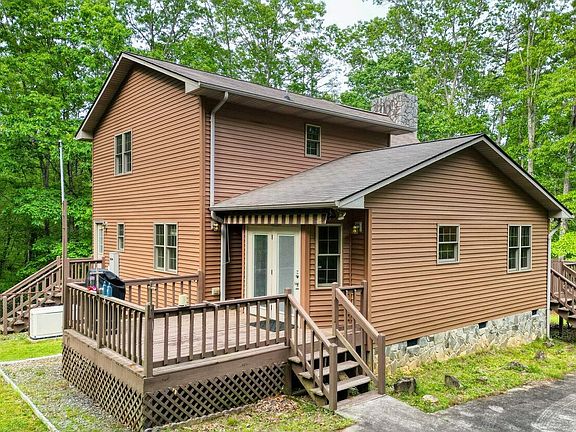 Amazing Mountain Privacy! Well kept home right in the middle of 8.73 Unrestricted Acres. Large garden spot, fenced area for pets, two storage sheds and covered wood shed. The home features a vaulted living room with stone fireplace and Pella windows let in great light. The basement area has been a large workshop with wood burning stove. Paved driveway, Generac generator (3 yrs old), private well and public water available.