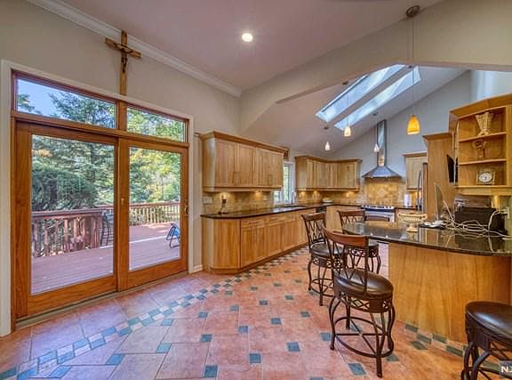 Welcome to this spacious and immaculate ranch located on desirable picture perfect street in wonderful town of Haworth. The main floor features an inviting and open floor plan for entertaining and every day living. The modern eat in kitchen offers style and function. The elevated living room offers a pretty bay window and dining area with french doors to an oversized deck overlooking the private and serene setting. The master bedroom features a walk in closet plus a brand new renovated bathroom with walk in shower. 2 additional bedrooms and a modern full bathroom complete the first level. Enjoy two tiered deck and patio complete with fire pit overlooking the beautifully landscaped property on almost 1/2 acre. The ground floor features a family room with built-ins and a powder room plus office and music studio with access to the oversized 2 car garage. Truly must see!